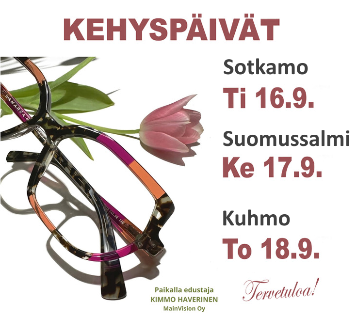 Tarjoamme monipuoliset optikon ja silmälääkärin palvelut, kuten näöntutkimukset sekä silmälasien korjaus- ja huoltotyöt. Valikoimastamme löytyy erilaisia silmälasi- ja aurinkolasikehyksiä.
